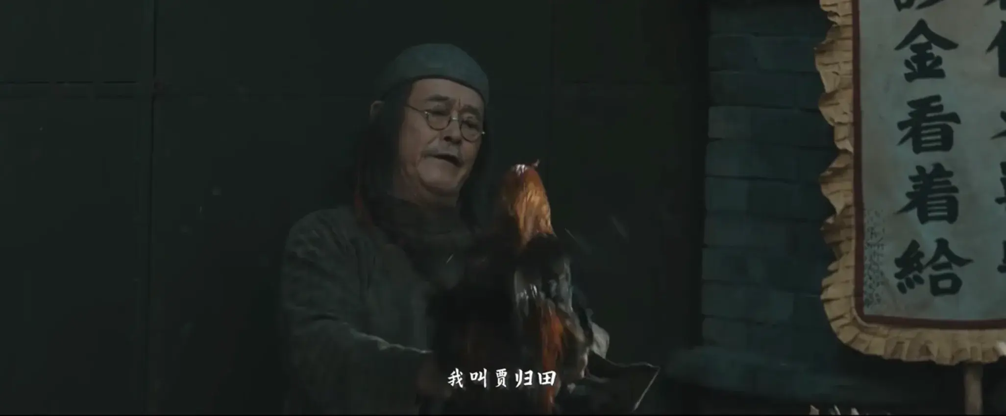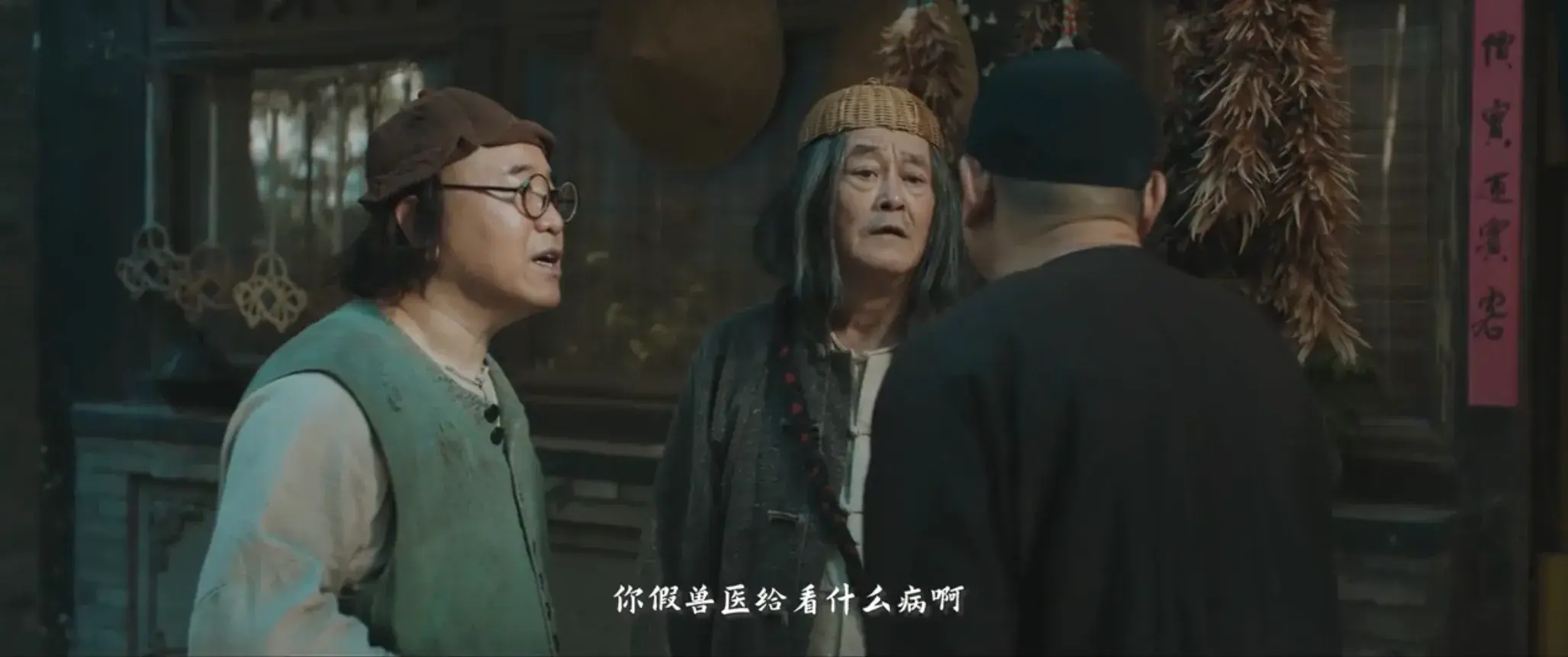 比如本剧以“同音字”做喜剧包袱,对方问“你假兽医给看什么病啊”,贾归田答道,“我姓贾,我叫贾归田”,搭配演员赵本山眼镜、圆帽、长发、怀抱公鸡的滑稽造型,还是很有喜剧看点。