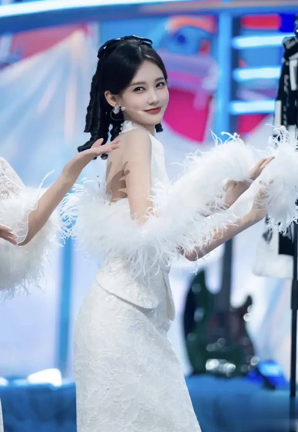孟子义选择一袭纯白高开衩旗袍,红唇卷发,碎钻羽毛头饰在灯光下熠熠生辉,摇曳生姿间尽显“十里洋场第一交际花”的明艳气场。两人站在一起,一淡雅如水墨,一浓烈似油画,形成极具张力的视觉碰撞,被网友盛赞:“当她俩撑伞走过,仿佛看见半个民国。”