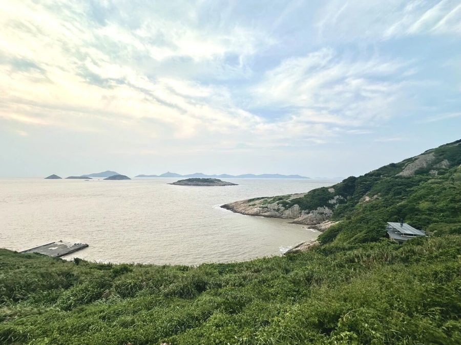 站在积谷山岛高处极目远眺,基地悄然藏于葱茏绿草之间。
